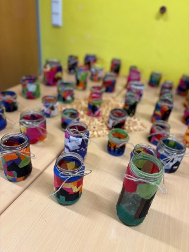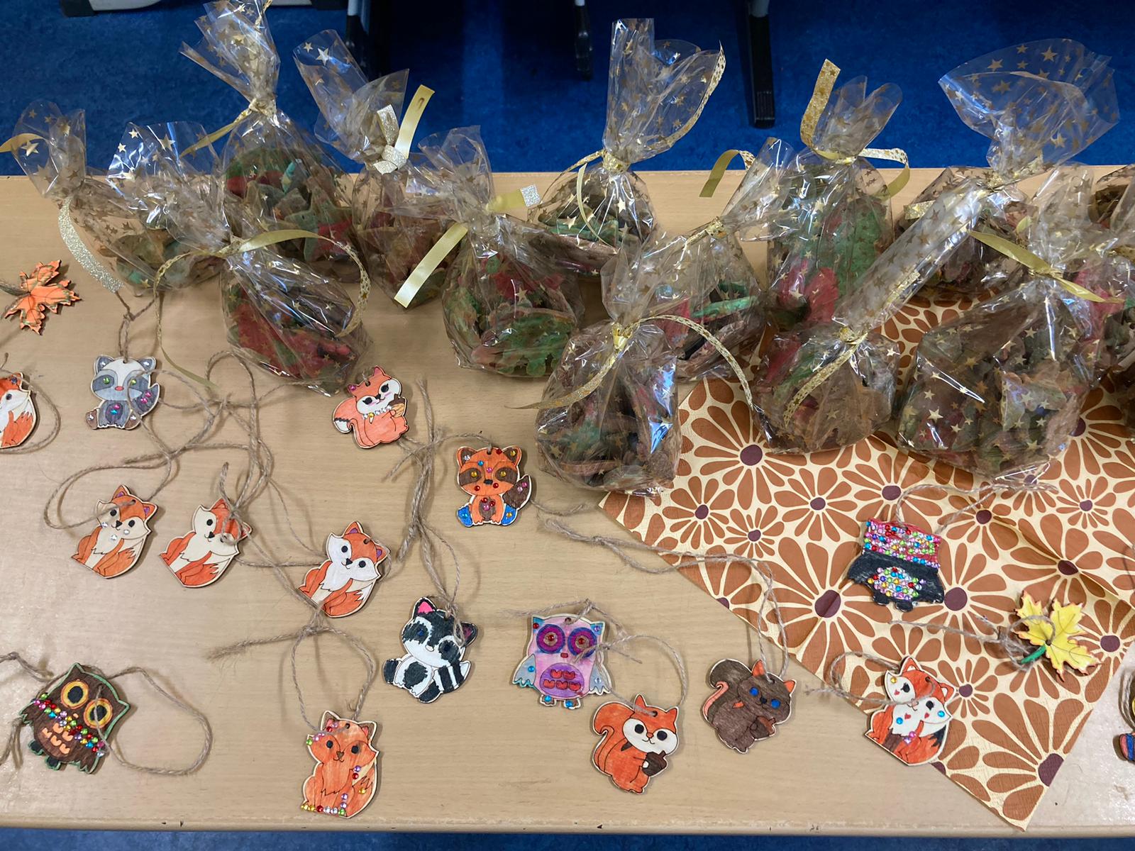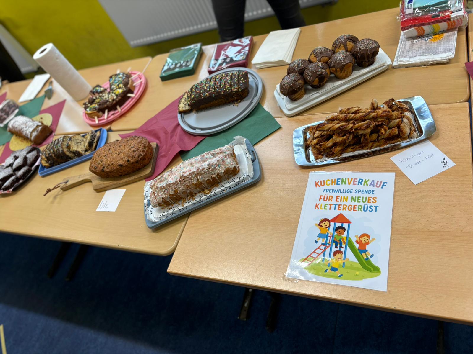Für das leibliche Wohl sorgte ein köstliches Kuchenangebot, das von vielen fleißigen Eltern vorbereitet wurde. Außerdem präsentierten die Kinder stolz ihre selbst gebastelten Produkte aus dem Projekttag, die gegen eine freiwillige Spende mitgenommen werden konnten.
