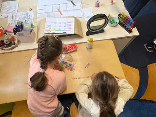 Am 15.11.2025 fand an unserer Grundschule ein stimmungsvoller Novemberbasar statt, bei dem unsere Schülerinnen und Schüler mit viel Freude und Kreativität beteiligt waren. In verschiedenen Aktionen konnten die Kinder Armbänder herstellen, basteln, spannenden Vorlese-Geschichten lauschen und bei Mitmach-Musik selbst aktiv werden.